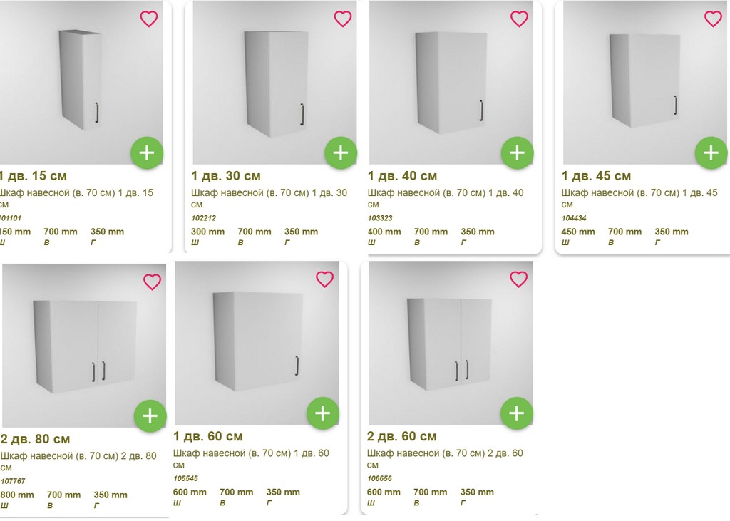 Стандартные размеры пеналов, тумб и шкафов прямой планировки