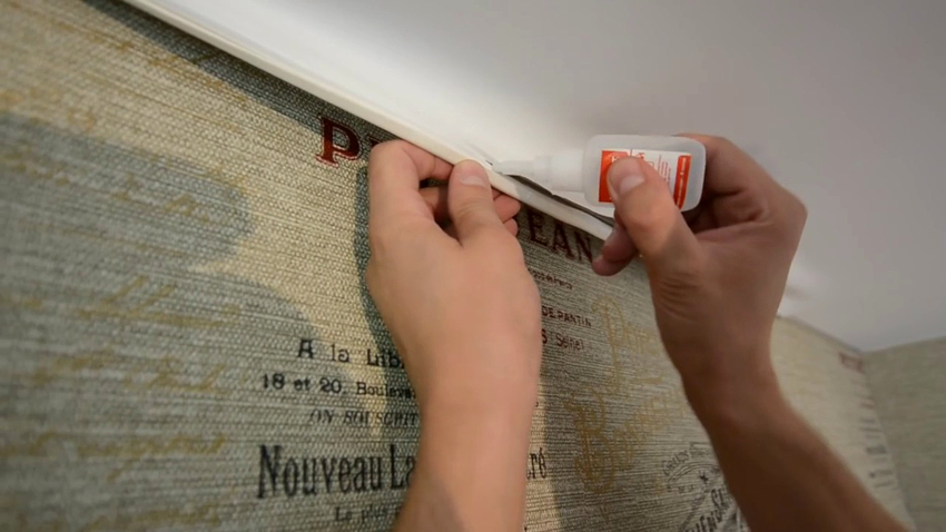 Вопрос о том, каким клеем заклеить натяжной потолок, обычно проблем не вызывает. Это может быть любой универсальный или специальный состав с быстрым высыханием: Cosmofen, Somafix, «Контакт» и т. д.