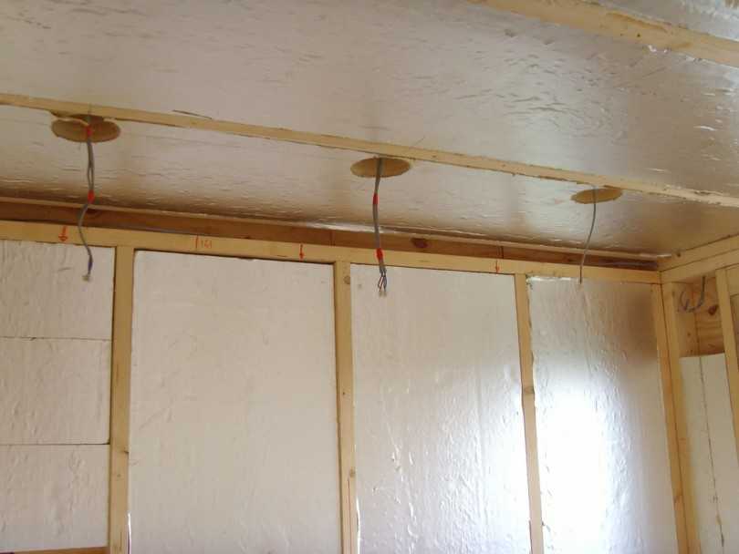 Следующий этап — укладка изолирующего материала, проводки и всех необходимых коммуникаций.