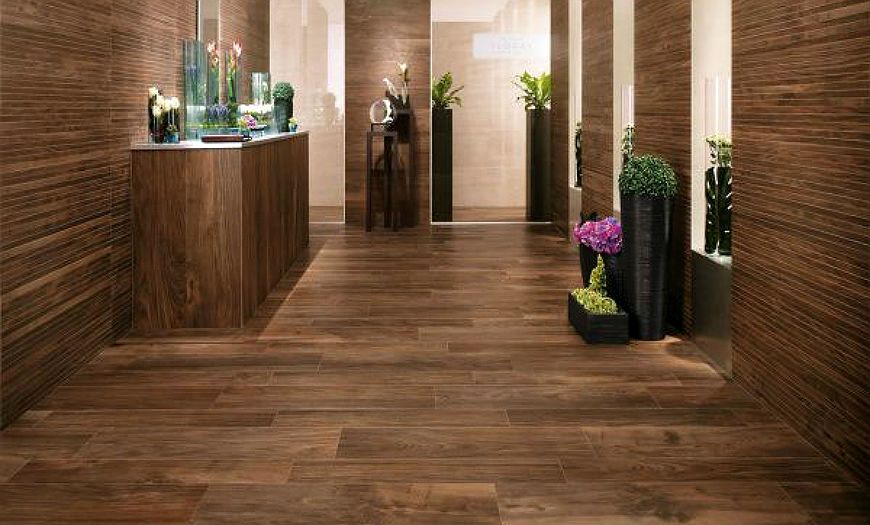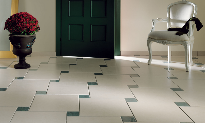 Полностью покрывать пол керамогранитом не желательно. Будет очень не комфортно передвигаться по холодному полу с горячей ванны в комнату. Дизайн прихожей может предусматривать использование плитки на полу. Для плитки нужно твердое основание из бетонной стяжки, которое укладывается поверх перекрытия этажей. Если не придерживаться этого принципа плитка будет отваливаться. Различные варианты оформления напольного покрытия представлены на фото. (Определяем лучший пол для прихожей (7 вариантов))