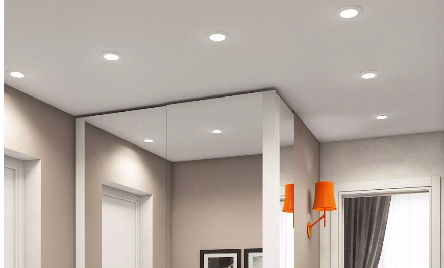 Дизайн узкой прихожей, не должен включать слишком большие и массивные приборы освещения.