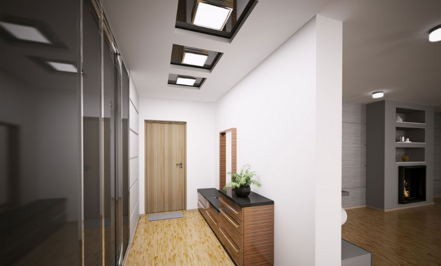 Интерьер узкого коридора в современном стиле может быть представлен несколькими вариантами. Все они являются ответвлениями одного направления в дизайне:
