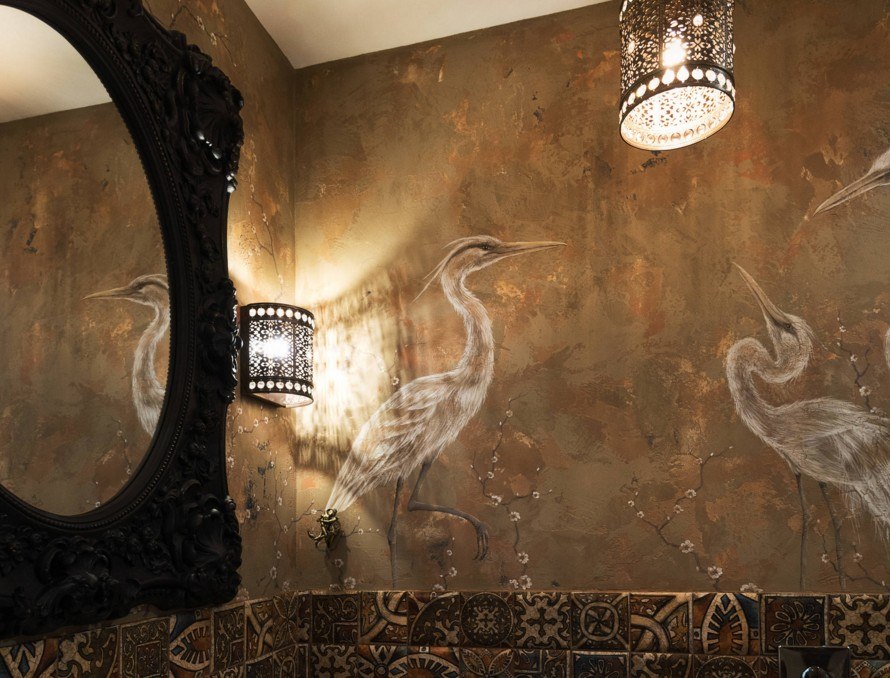 - Энкаустика — краски держатся на штукатурке с помощью воска. Не очень сложна в исполнении, однако настенная роспись в этой технике смотрится очень эффективно. Да и творец получает от работы большое удовольствие.