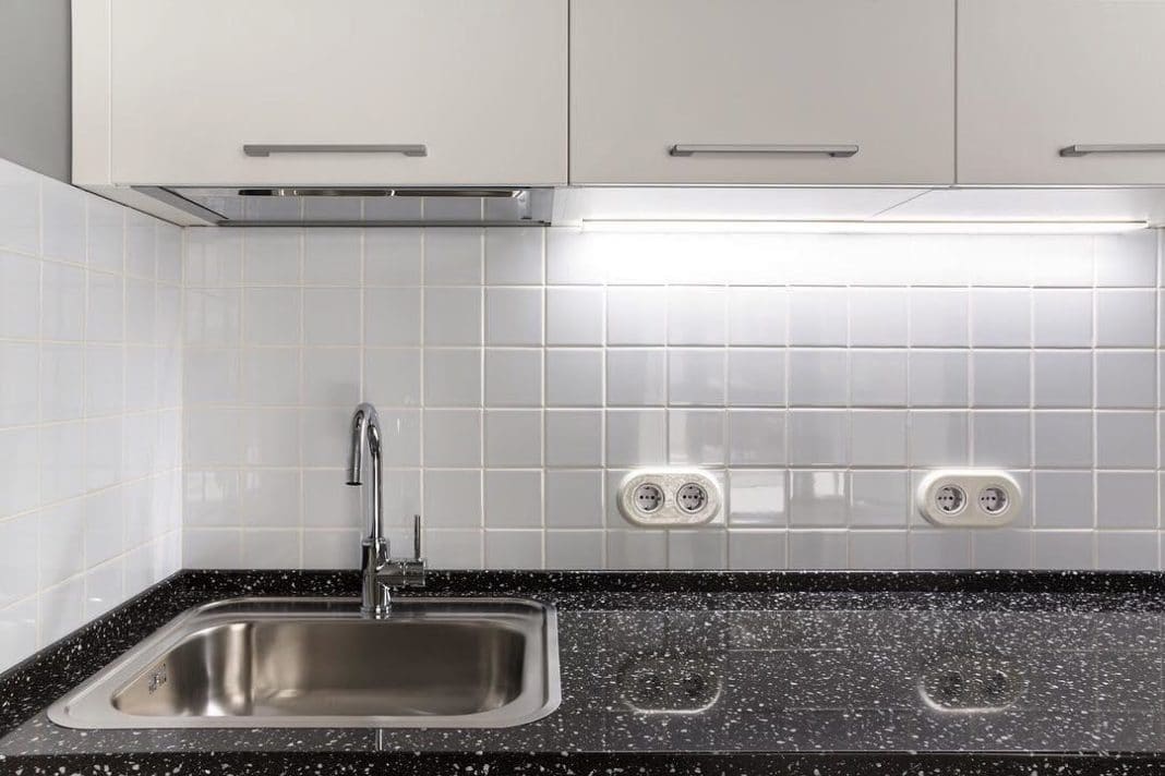 Эта зона и используется для монтажа розеток, которые располагаются на высоте 5-10 сантиметров. Они должны находиться в отдалении от мойки, плиты или варочной поверхности.