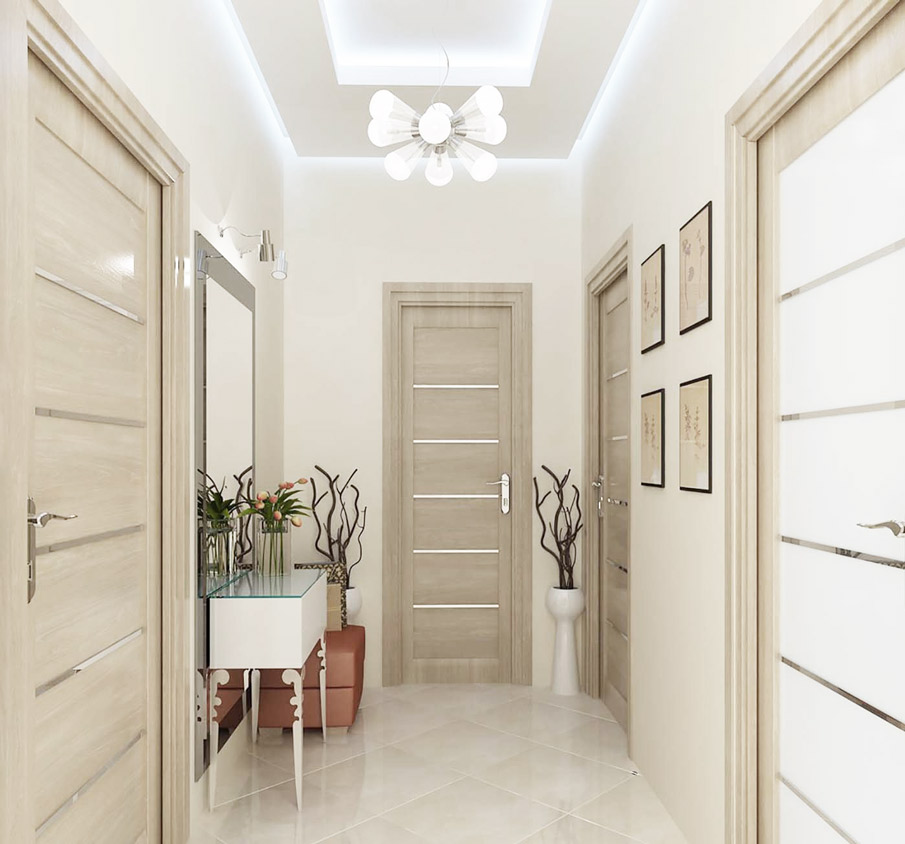 Бежевый выигрышно смотрится в интерьере разных по назначению комнат. Маленькие коридоры и прихожие со стенами светло-бежевого цвета в сочетании с коричневыми молдингами выглядят шире и просторней. Небольшие по площади ванные комнаты визуально увеличиваются, а лоджии приобретают уют.