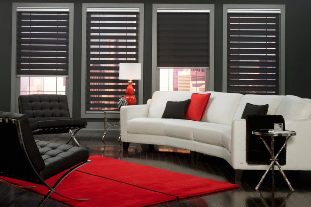 Еще существуют интересные рольшторы под названием «Зебра». Их особенность заключается в том, что они похожи на традиционные жалюзи больше, чем остальные виды ролет. Полотна состоят не из цельного отреза материала, а из чередующихся полосок плотной и прозрачной материи. С такими занавесками легко регулировать степень освещенности в помещении.