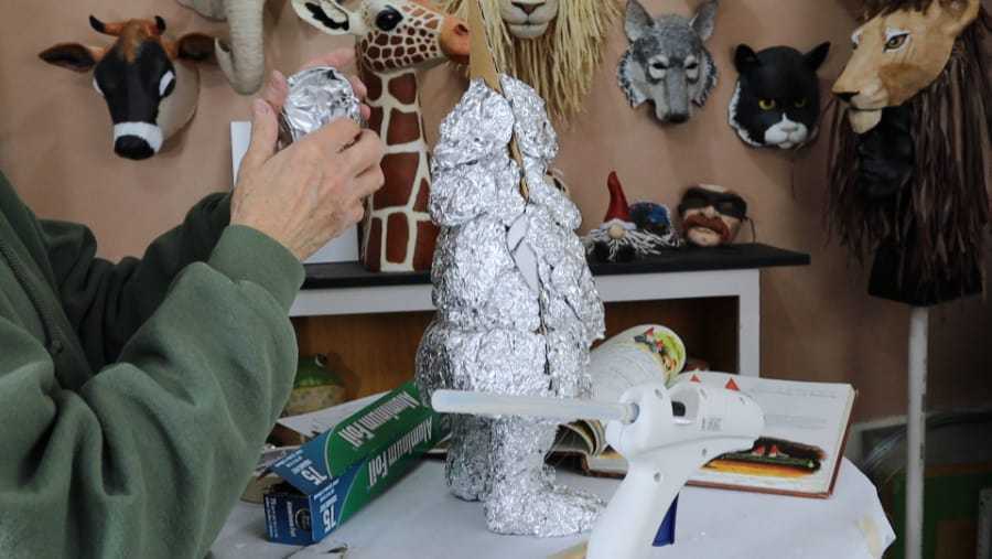 - Сначала собрать каркас будущей фигурки или емкости из любых подручных материалов.
