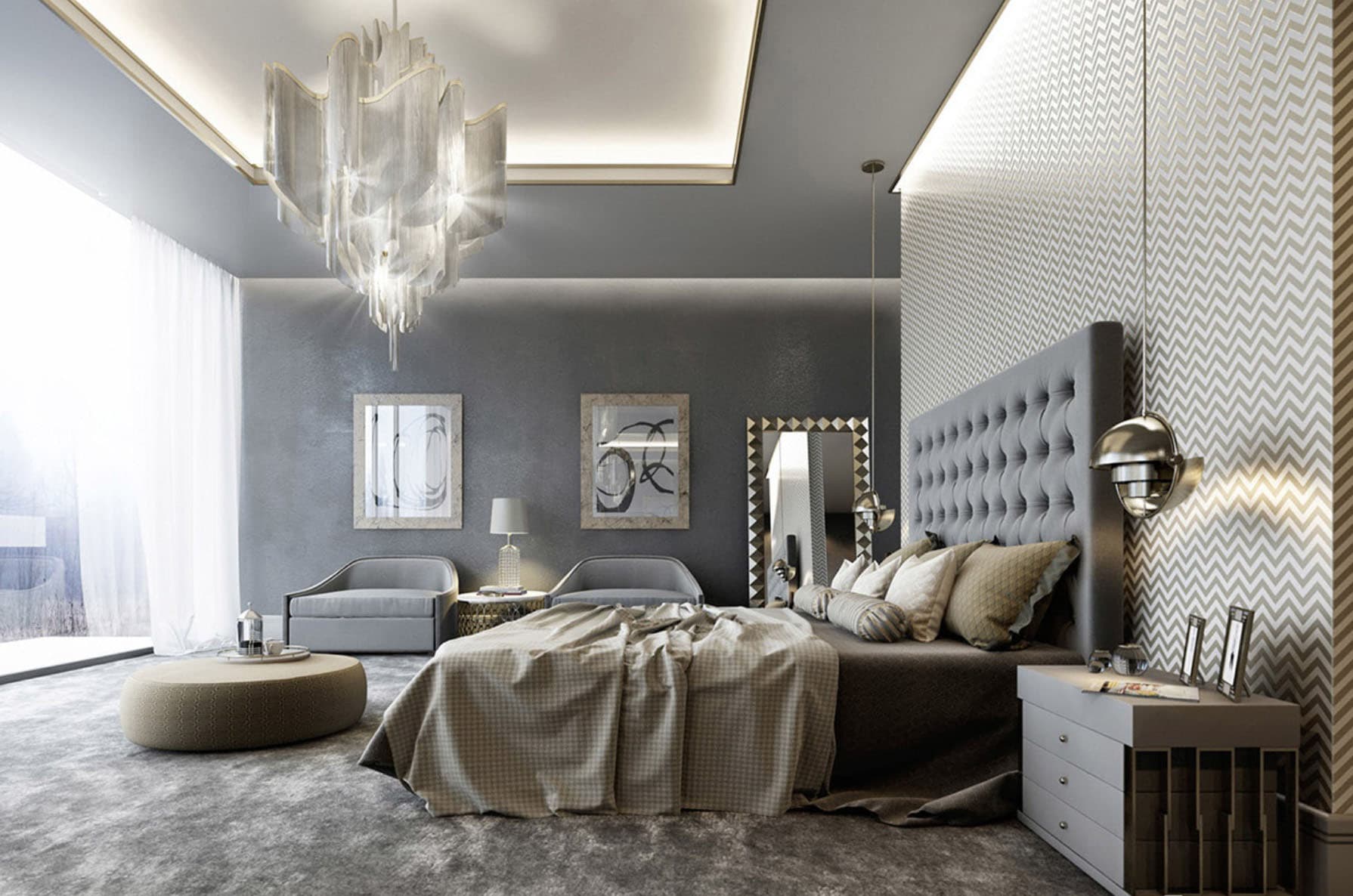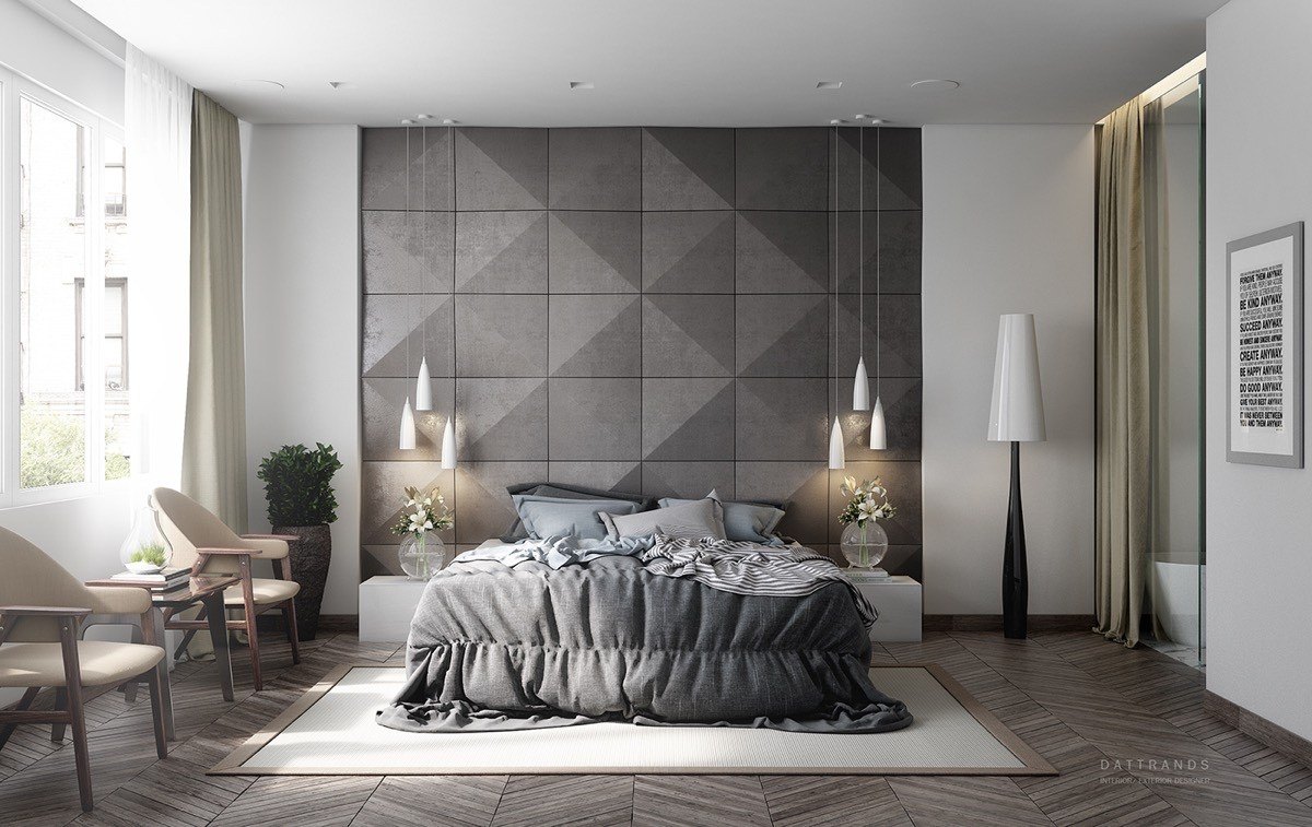 Современная спальня не приветствует монохром, поэтому серый здесь может быть одним из тонов в комбинации с другими цветами.