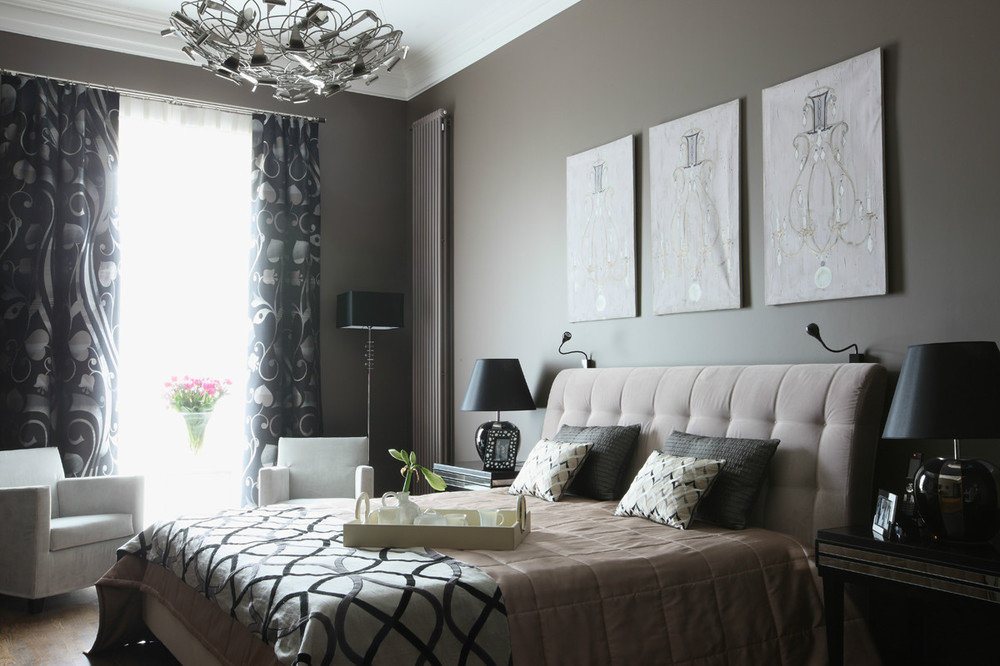 Нежные оттенки серого и коричневого в спальне классического стиля