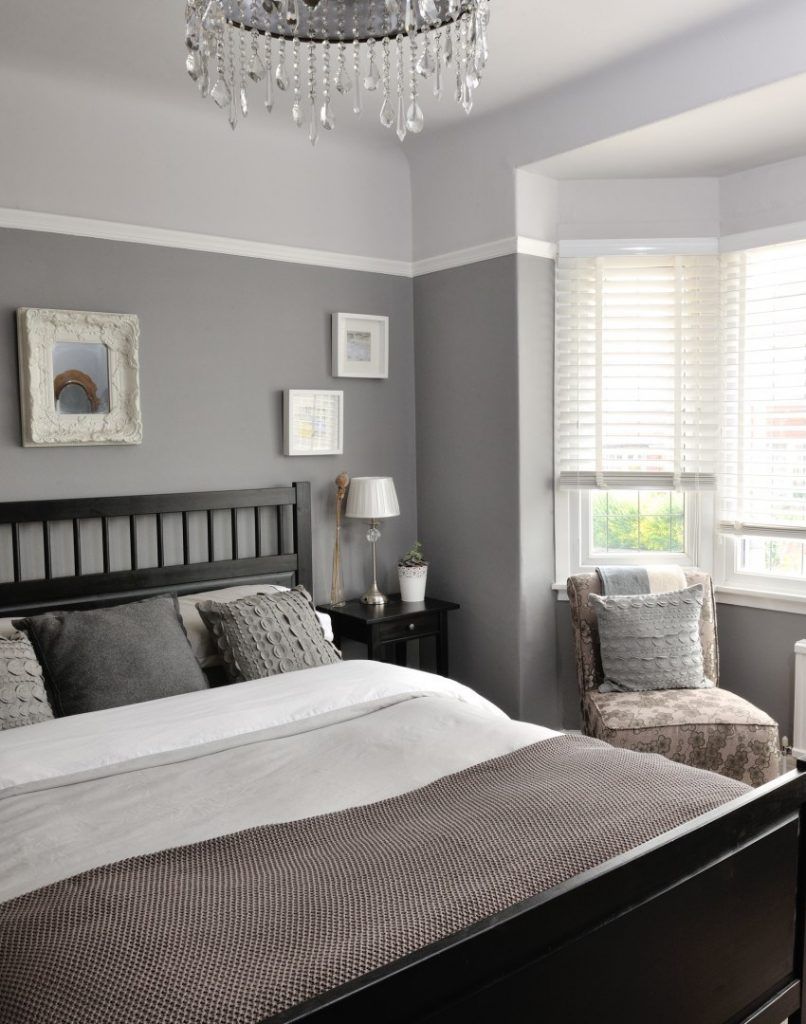 Все это можно воплотить в серой спальне: стены оформляются в темно-серый тон, к которому подбирается серая или коричневая кровать, сделанная из натуральных древесных пород.