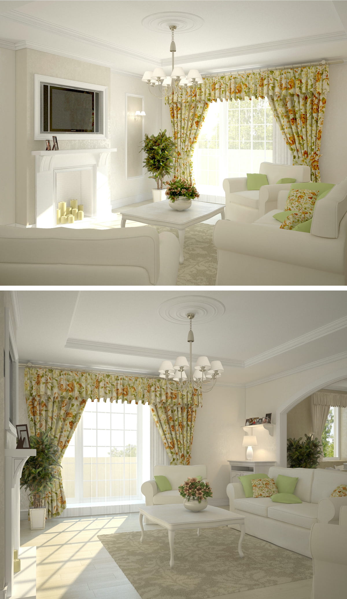 Белые. Они сделают помещение воздушным и необыкновенно легким. Приоритетом выбора должны становиться только чистые оттенки. Это поможет избежать эффекта «грязи» в дизайне. При все универсальности белого спектра, более приятно он будет восприниматься на фоне прохладных серых тонов. Если же на стенах превалируют теплые краски, то во избежание резких контрастов белые гардины заменяют на кремовые.