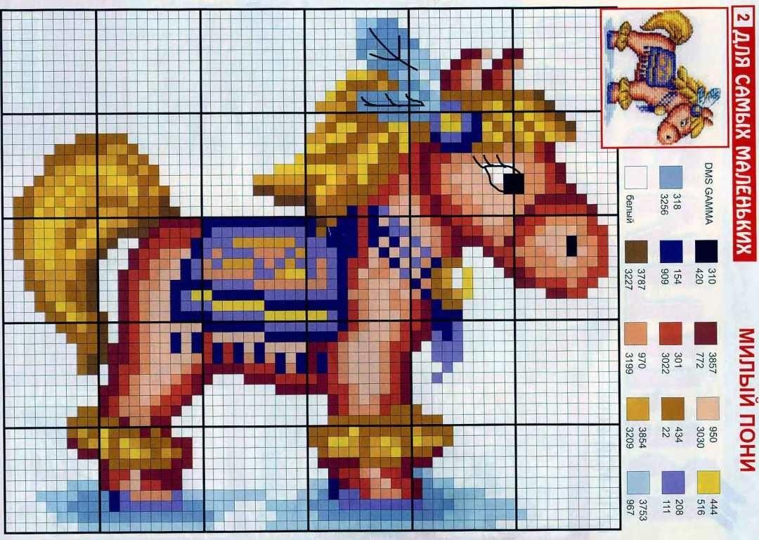 - Выбирайте картинки, составленные из простых крестиков и небольшого числа стежков «назад иголку», поскольку они наиболее доступны для ребенка.