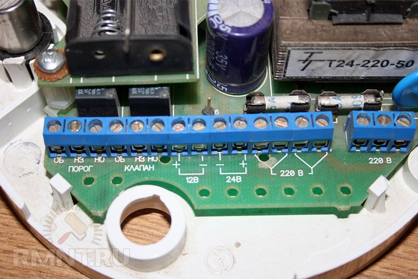- релейный выход, через который возможно подключить электрические устройства (вытяжной вентилятор, отдельный оповещатель, сигнал на пожарный или диспетчерский пульт и т. д.);