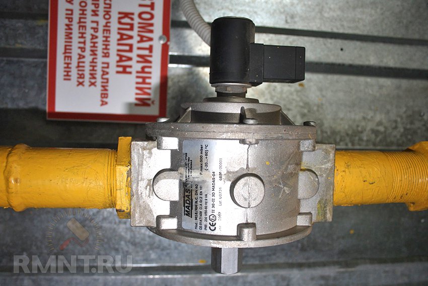 - В случае использования автоматизированного котла (например, настенного газового), датчик загазованности должен быть укомплектован быстродействующим запорным клапаном, прекращающим подачу газа в случае его срабатывания.