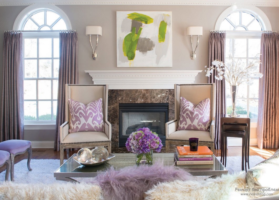 Современная гостиная в сиреневых тонах