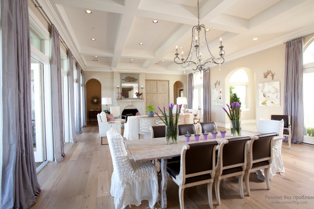 - Хлопковые или льняные занавески будут смотреться “бедными родственниками” рядом с велюровым диваном, напротив, тяжелые портьеры из парчи или бархата разрушат очарование прованса.