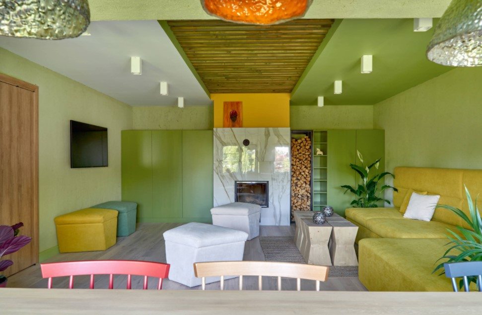 - Это универсальная палитра, которая гармонирует практически со всеми яркими деталями. Для гармонии, конечно, желательно выбирать природные оттенки – зелени, морской волны, фуксии, апельсина или солнца, кораллов, камня, дерева и огня. Такие комбинации применимы для разных помещений, и тем более для гостиной, где должно быть место и для комфорта, и для отдыха семьей, и для встречи шумной компании.