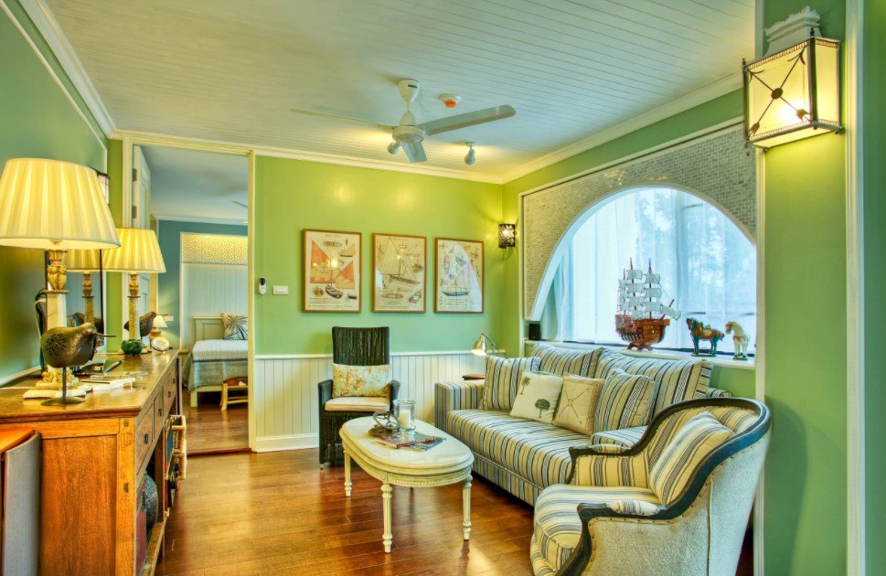 Для небольших по площади помещений идеальным решением станут визуально расширяющие пространство светлые оттенки зелёного.