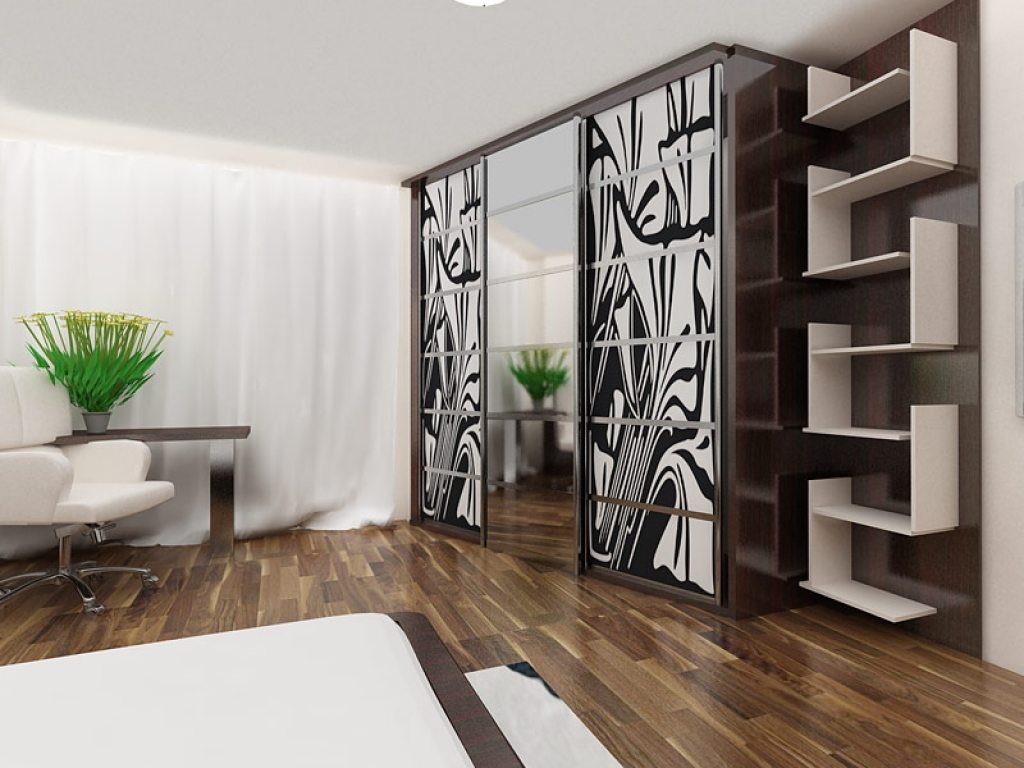 Кроме того, декор фасада шкафа с дверцами купе оформляют еще и фресками, лазерной гравировкой, бамбуком, настоящей или искусственной кожей, украшают экзотическим ротангом.