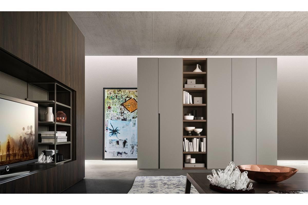 - Шкаф-купе прежде всего выступает пространством для хранения одежды, обуви, хозяйственных принадлежностей и остального домашнего имущества. Встроенный вдоль целой стены, шкаф-купе выступает вместительной нишей, а фасады скрывают разнообразие вещей внутри. Расположение в гостиной позволяет снять нагрузку со спальни в том случае, если первая комната больше по квадратуре последней; иначе монтаж установки в гостиной станет неуместным.