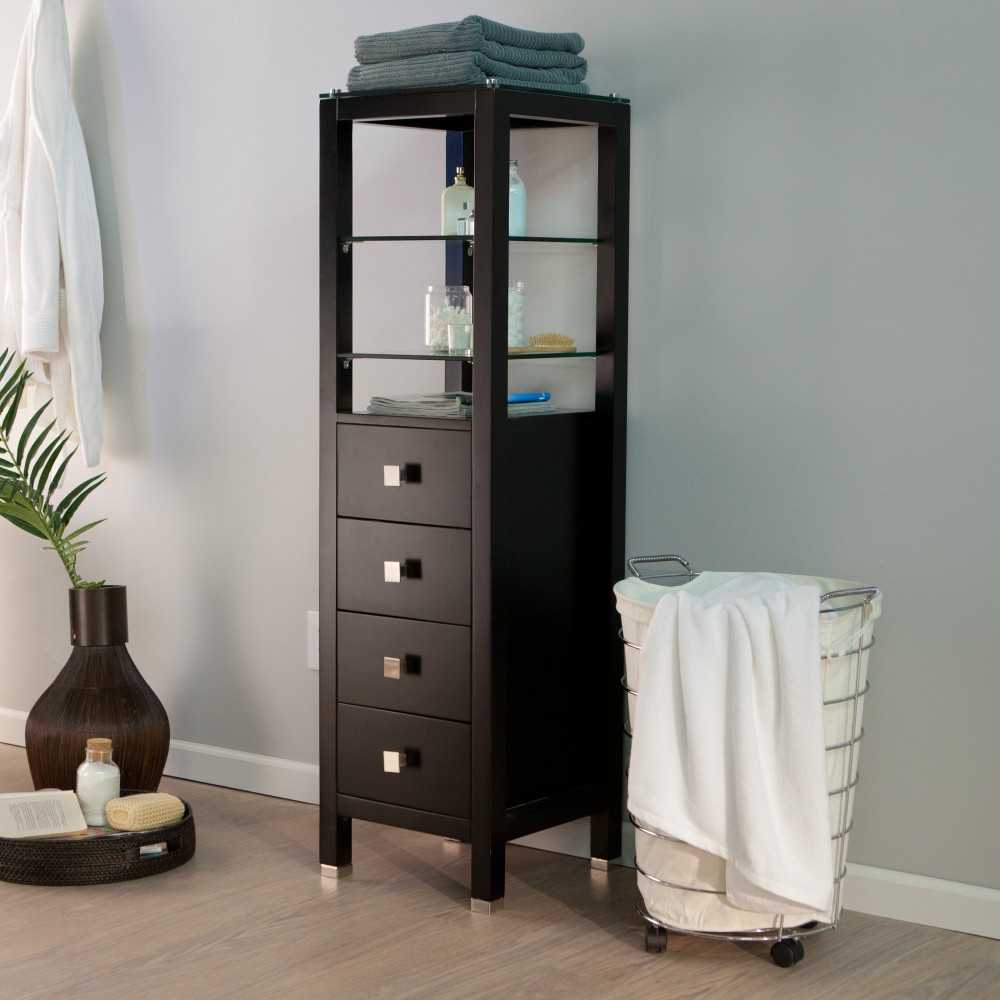 Перед тем как отправиться в магазин и купить пенал для ванны с корзиной, нужно точно знать его будущее местоположение и что именно вы планируете в нём хранить. Если в нём будут лежать халаты и банные полотенца, то выбирайте модели без выдвижных ящичков и с большими отсеками для хранения. Идеальным вариантом будет изделие с возможностью регулирования высоты полок самостоятельно.