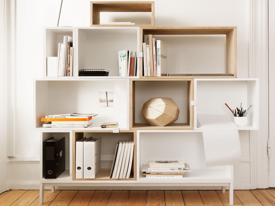 Наиболее традиционным считается горизонтальное расположение полок. В таких шкафах стеллажах проще размещать любые вещи. Подходит подобная мебель для классических интерьеров. Также шкафы с ровными геометрическими формами органично вписываются в стиль хай-тек и минимализм.