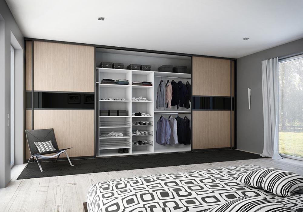 Расстановки внутренних деталей может быть разнообразной. Главное, чтобы мебель была функциональной, а наполнение шкафов купе удобным в использовании.