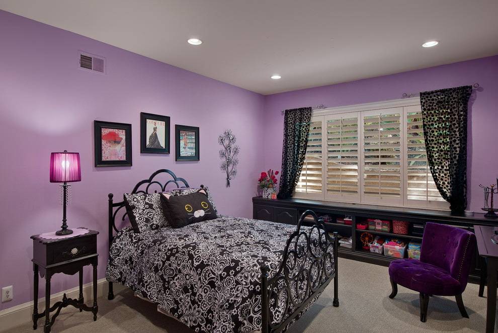 Вы добьетесь идеального дизайнерского решения комнаты, если оттените эти два цвета (фиолетовый и серый) нейтральными оттенками, например, белым.