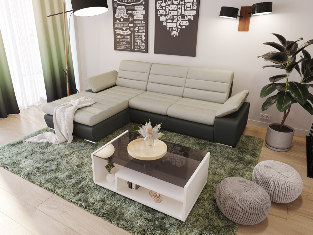 - Угловая мягкая мебель. Большие диваны, на которых могут свободно разместиться члены семьи и гости, легко превращаются в просторное спальное место на ночь. Утром его легко собрать, не стеснив небольшую, ценную область.