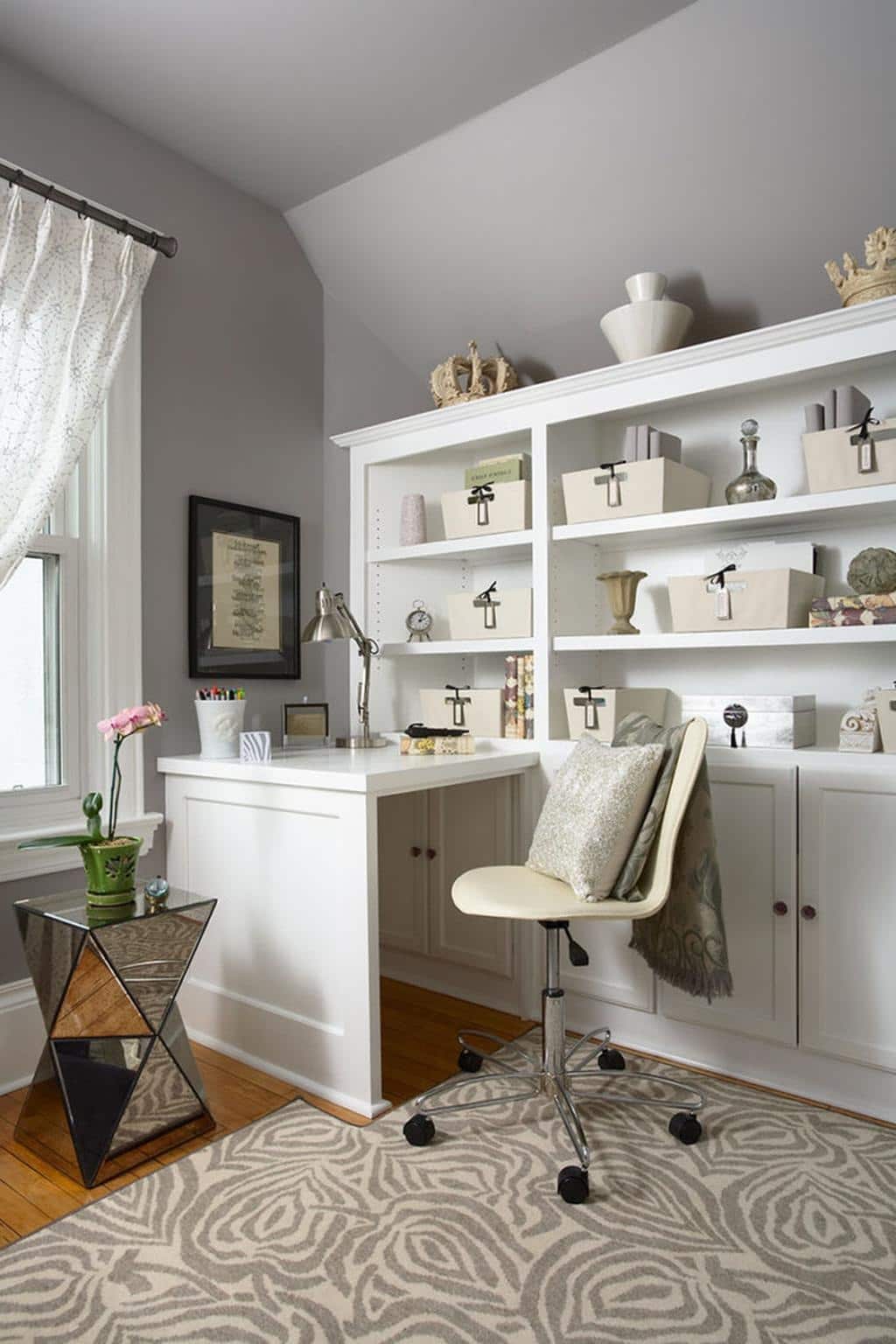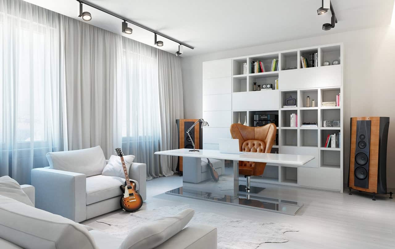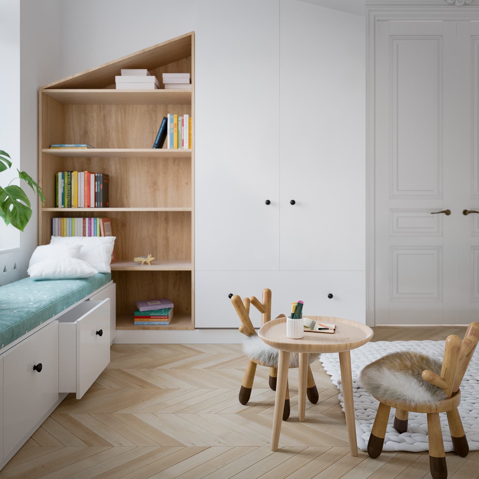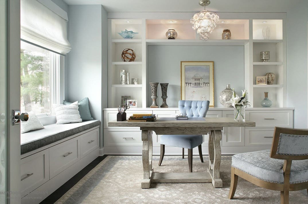 В кабинете уместен светло-серый цвет, а в детской комнате — слегка зеленоватый или голубой. Элементы мебели и декора могут быть тёмными, но их не должно быть слишком много.