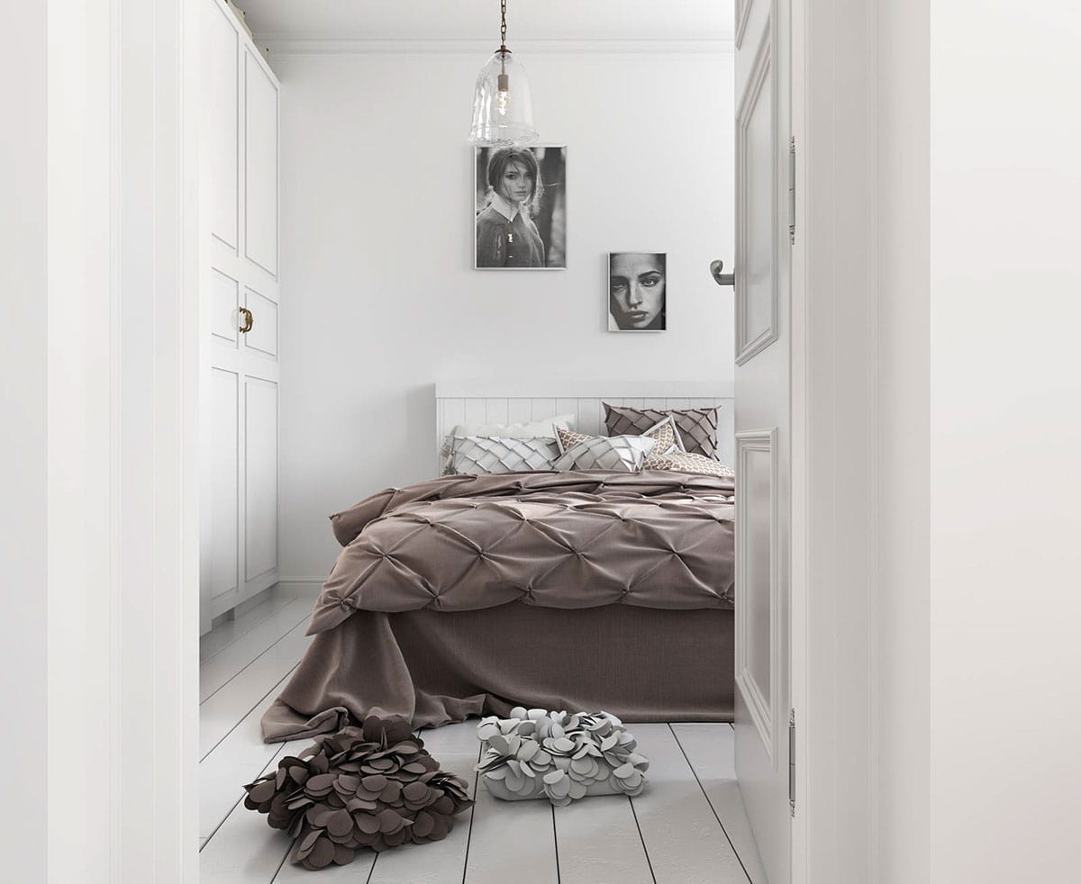 В некоторых проектах возле двери имеется ниша, в которую помещается двуспальная кровать. В таком случае проблема с размещением постоянного спального места благополучно решается. Остается только сделать ширму, которая скроет интимный уголок от посторонних глаз.