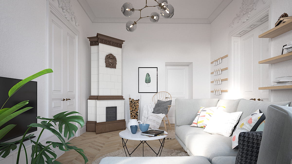 конструктивизм. Мягкая, светлая и однотонная цветовая гамма. Предпочтение отдается мебели с максимальной функциональностью и простотой линий. Встречаются здесь каркасные стулья и диваны на ножках из гнутых металлотрубок. Табу: узорчатый текстиль или обои с рисунком.