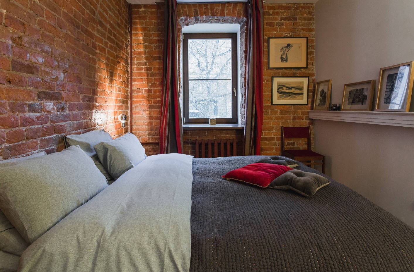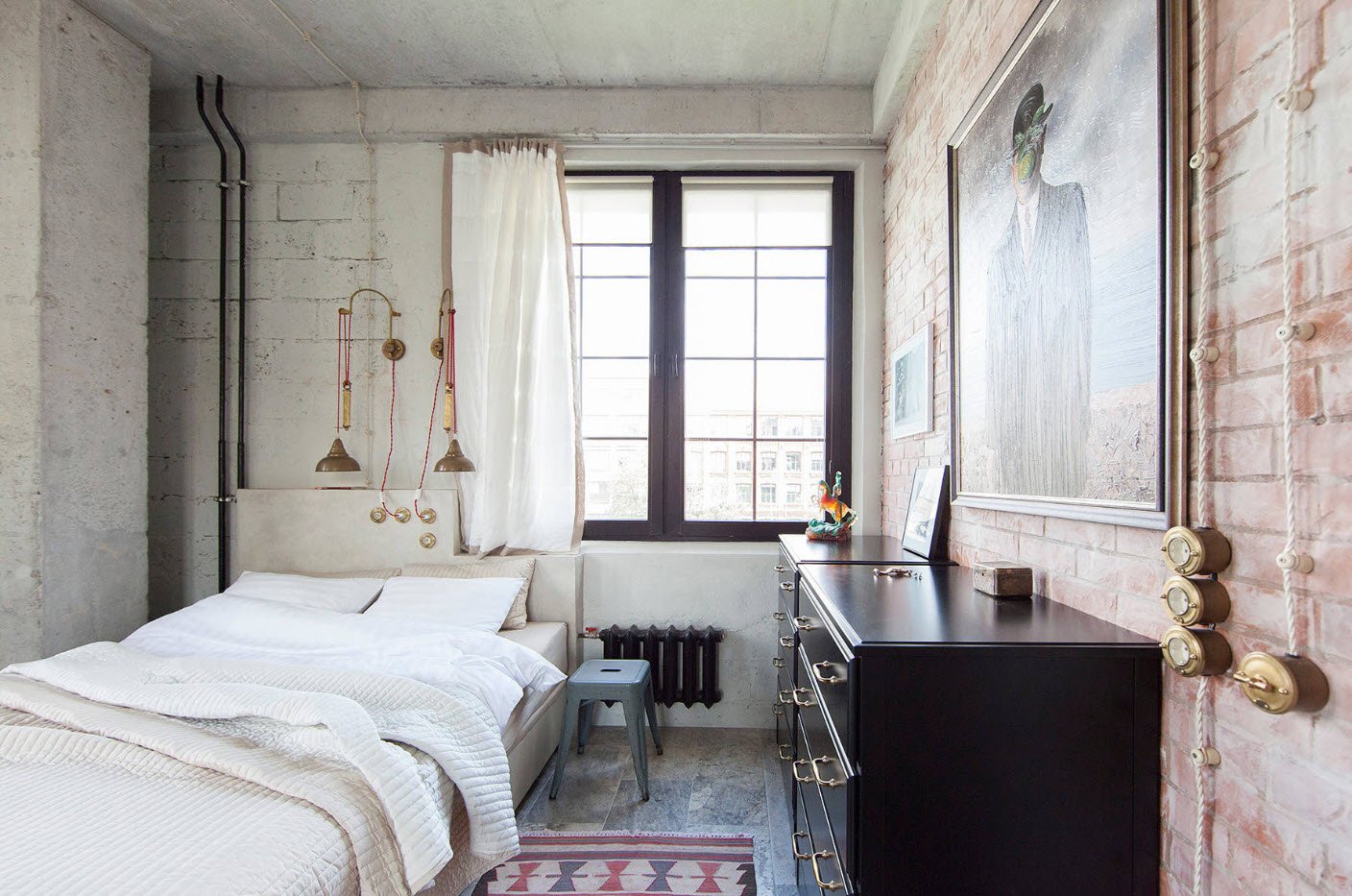 Преимущества: достаточно места для вещей, кровать, установленная напротив окна, смотрится очень стильно.