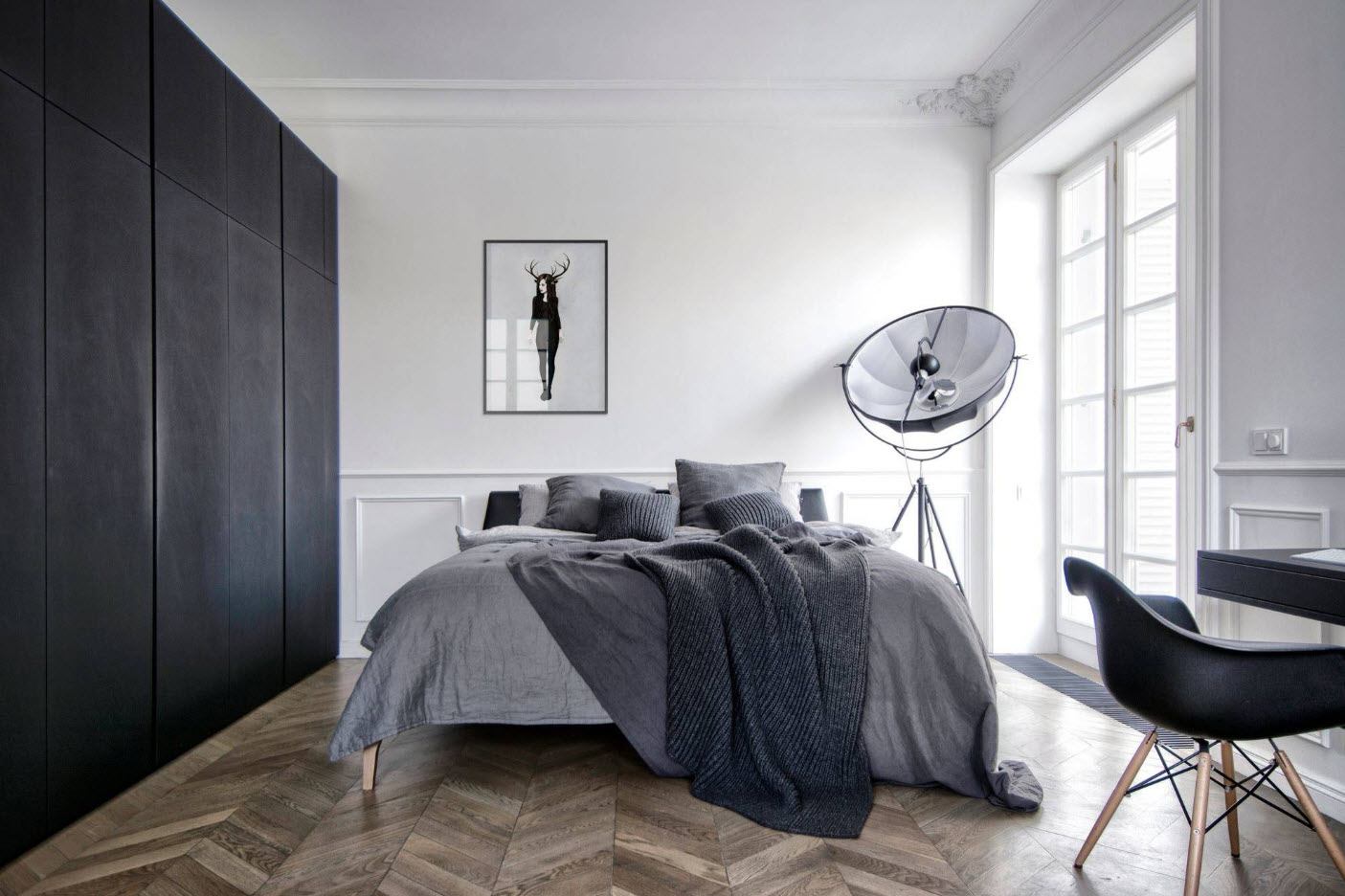 - Для современных спален лучше всего подходят варианты из серой гаммы. Они придают строгость и, в то же время, смотрятся стильно, особенно при грамотном подборе мебели.
