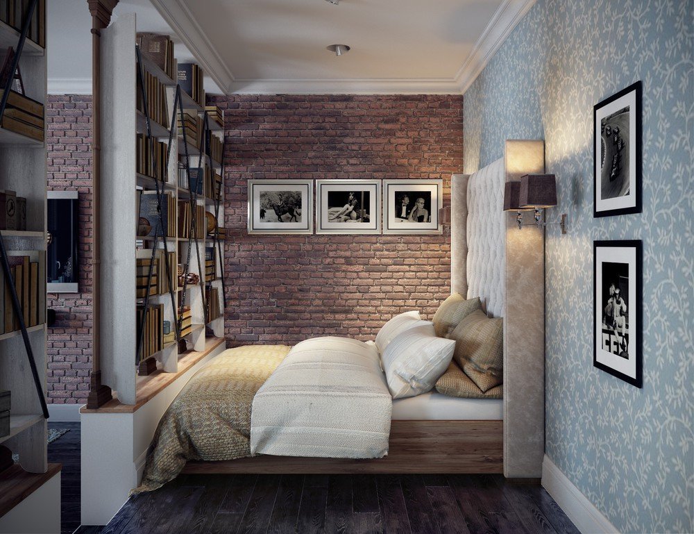 Подойдет для оформления спальни площадью 6 кв. м и промышленное направление. Лофт-дизайн довольно специфичный