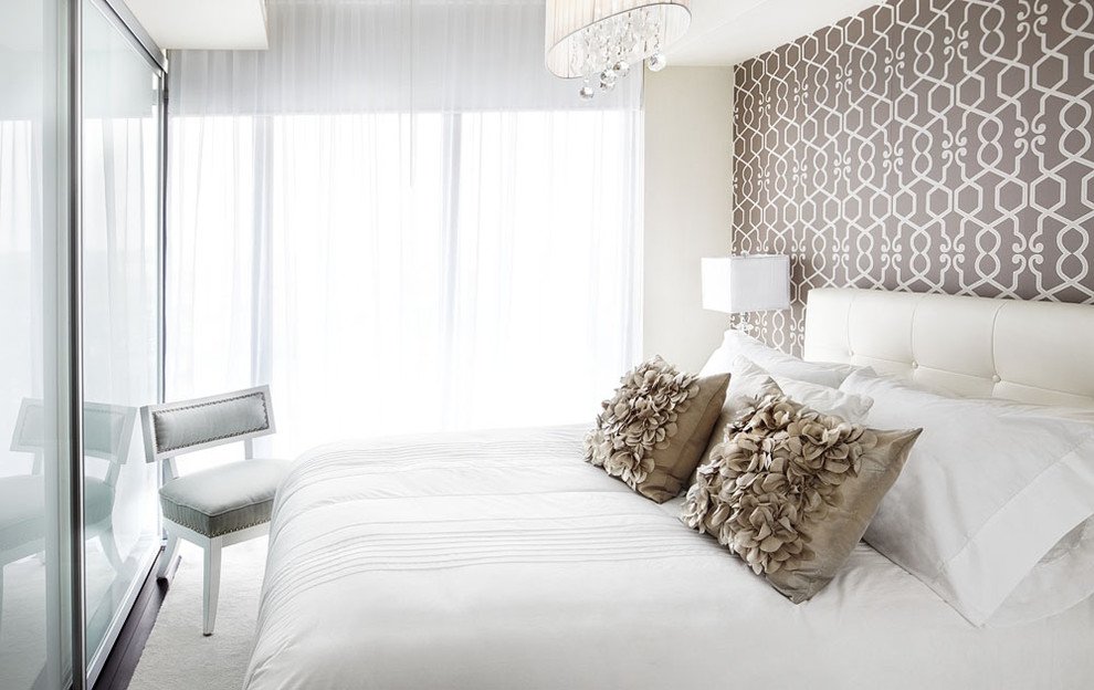 На стенах также можно использовать полоски от потолка к полу на обоях или можно поставить высокие шкафы, такие трюки визуально делают стены выше. Другой способ – это узорчатые обои, которые придадут эффект простора и сделают спальню визуально выше.