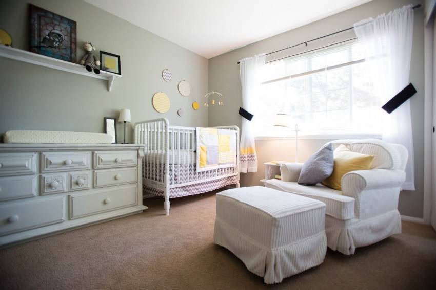 В жизни каждой мамы наступает время бессонных ночей. Причин несколько, это и ночные кормления, и прорезывание зубов. Поэтому, по возможности установите в комнате кресло или небольшой пуф, где вы могли бы укачивать малыша.