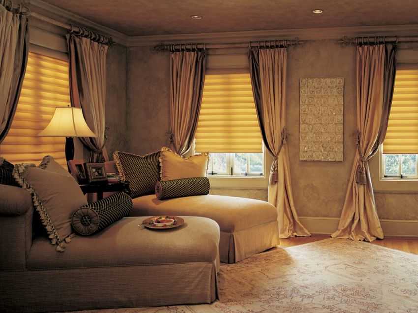 Оттенки этой гаммы нейтральные, поэтому к бежевым стенам подойдет практически любой цвет гардин. Не стоит отказываться от ярких и насыщенных тонов. Если вам нравится глубокий красный, бордовый, синий, даже неоновые цвета, используйте их при дизайне интерьера комнат с бежевыми обоями.