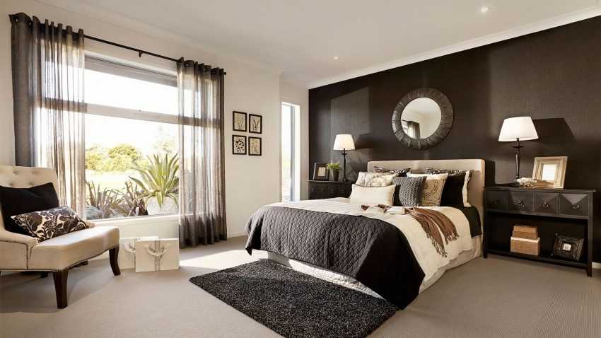 Подойдёт и гарнитур графитной расцветки. Если правильно подобрать температуру серого тона и грамотно скомбинировать с подходящими оттенками коричневого, то можно добиться потрясающего эффекта. Недаром серо-коричневая спальня ценится дизайнерами во всём мире. Её любят за шикарный внешний вид и тёплую атмосферу.