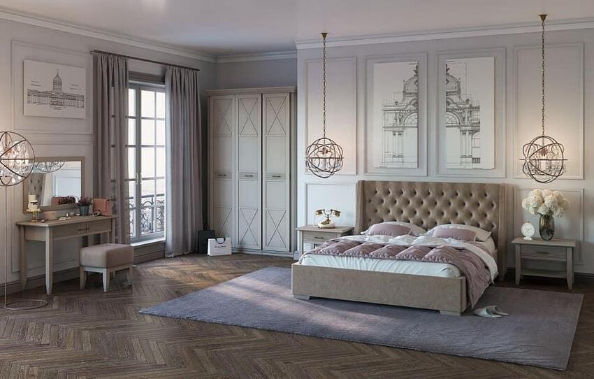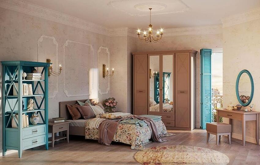 Богатая цветовая палитра позволяет оформить спальню с любыми габаритами, уровнем освещенности и стилевым решением.