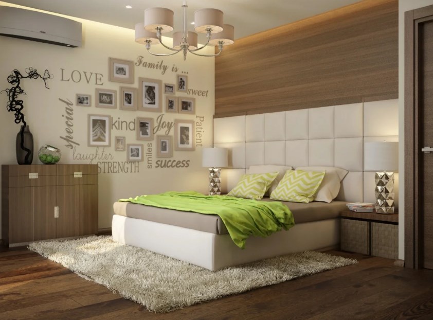 Бежевый является универсальным решением, его можно дополнять любым понравившимся цветом. Главное — не забывать о первоначальном назначении спальни, в соответствии с этим подбирать парные тона.