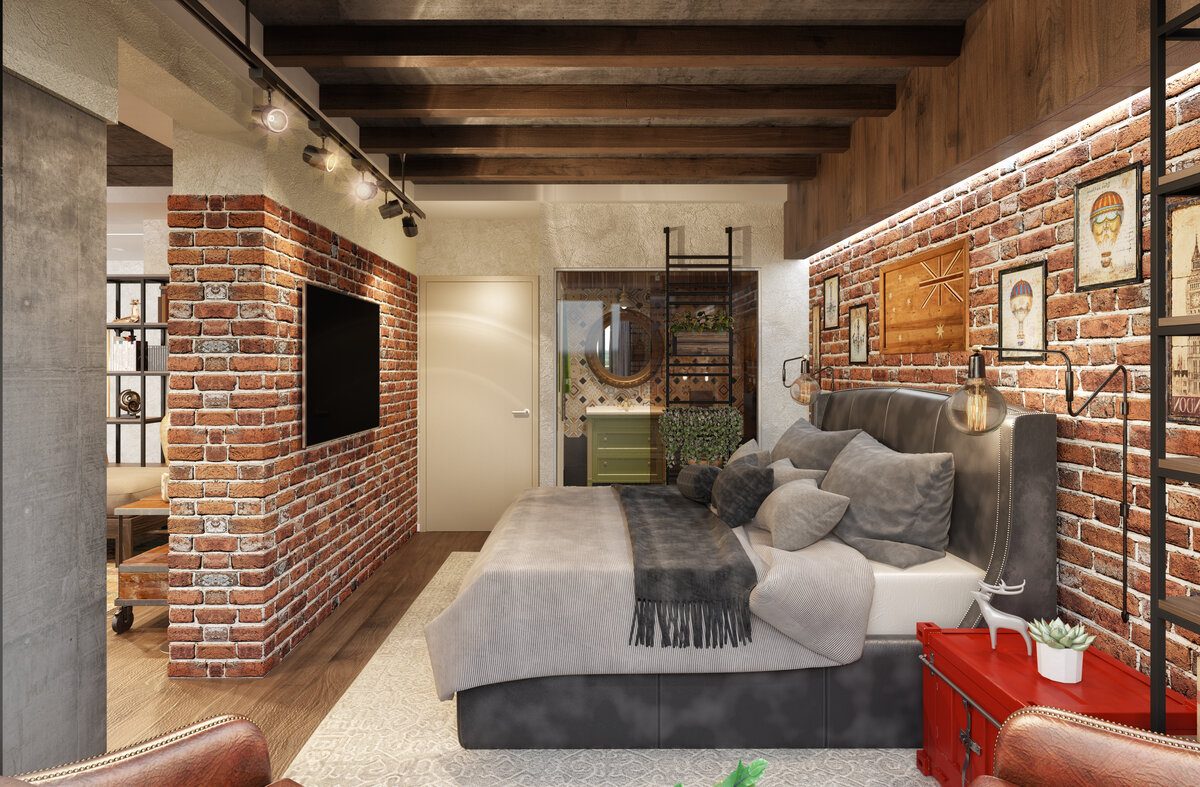 Спальня-гостиная в стиле лофт — игра аксессуаров