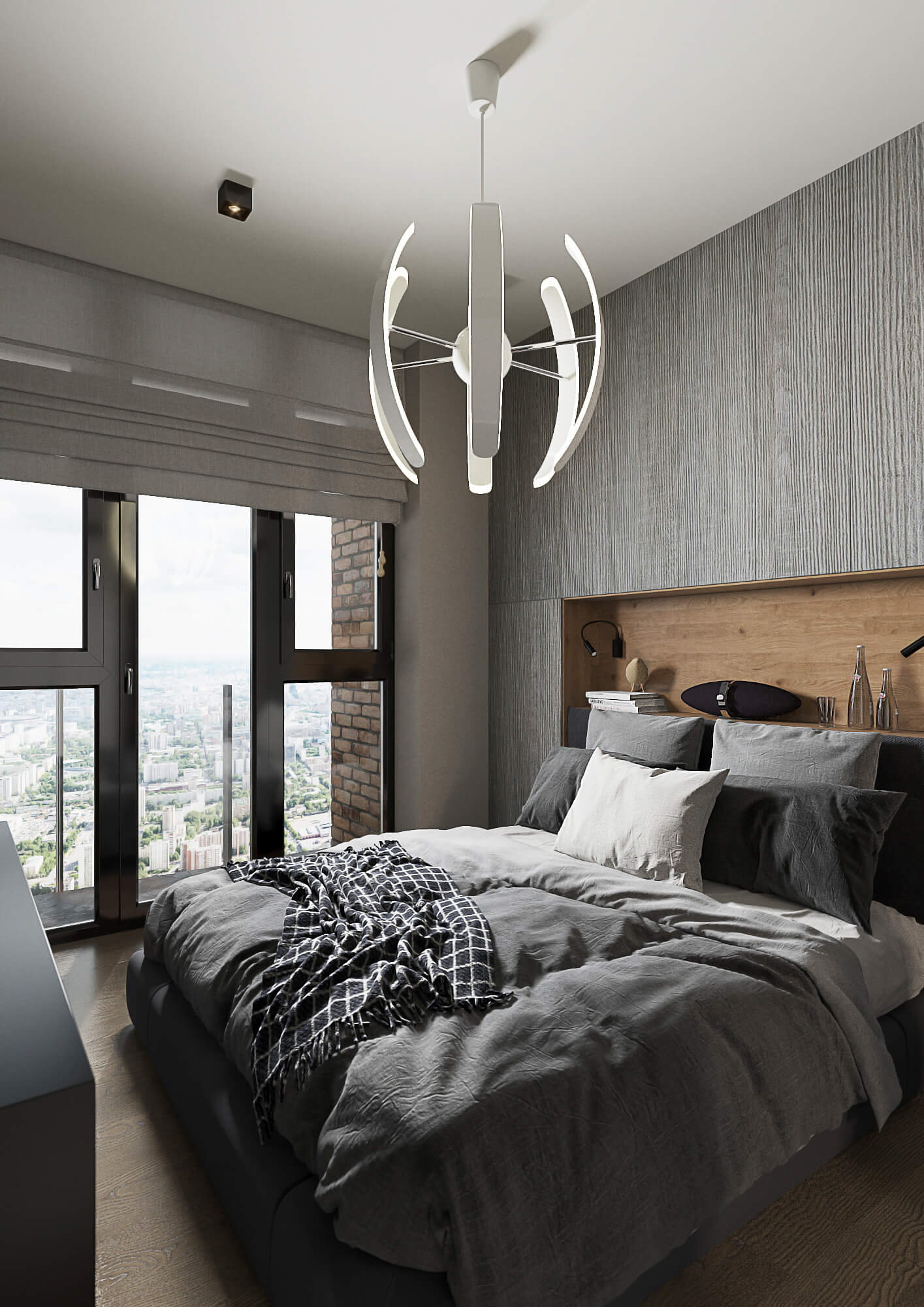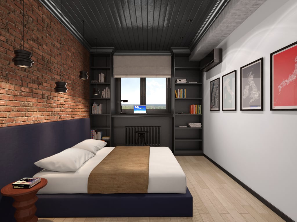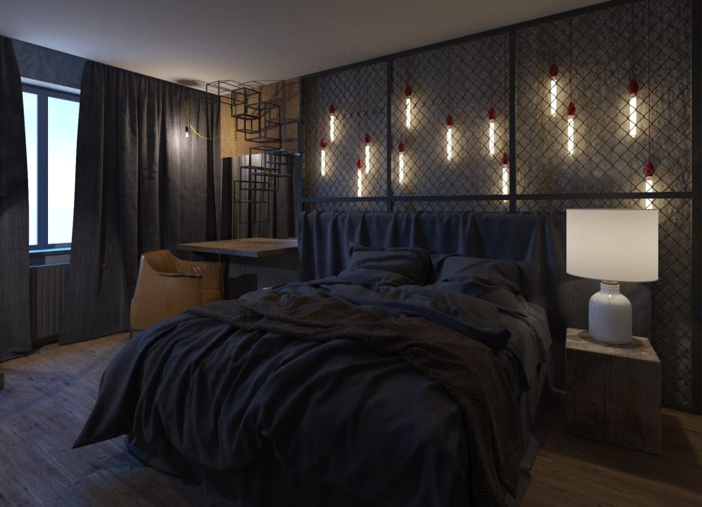 Мужская спальня, выполненная в подобном стиле, должна ориентироваться на практичность, функциональность и удобство дизайна. Мужчины предпочитают лофт за его брутальность и показную небрежность. Такой дизайн становится типичным отражением мужского характера, благодаря чему хозяин может чувствовать себя расслабленно и уверенно.