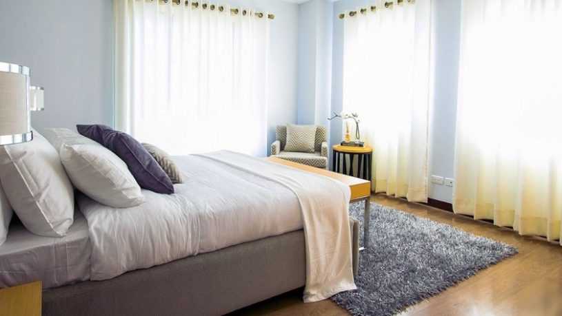 - нежно-голубой. Такой цвет успокаивает и настраивает на романтику. Он также благоприятен для сна, поскольку вызывает сонливость. В таком цвете могут быть выполнены ковры, шторы, постельное белье, аксессуары;