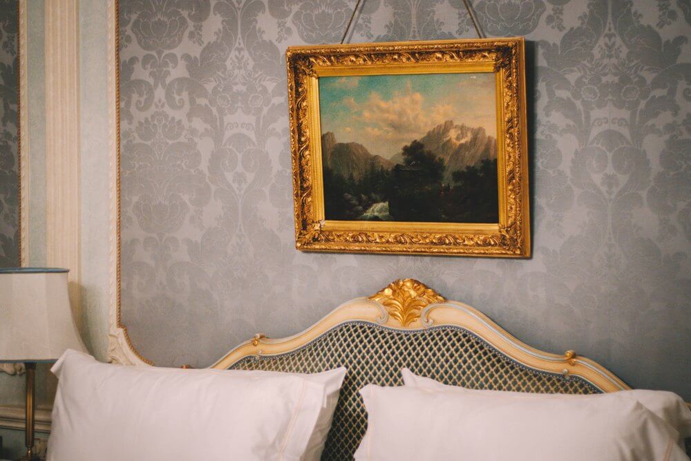 Классическое направление. Для него характерна темно-синяя спальня, она может быть дополнена золотистыми тонами. Здесь уместной будет старинная резная мебель, картины в деревянных рамах. Синей может быть не только отделка стен, но и мебель – кресла с высокой спинкой, декорированные извивистыми узорами.
