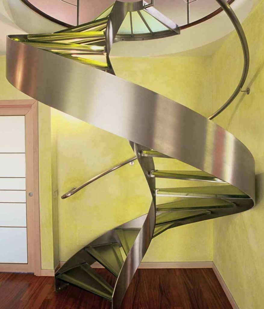 Винтовые лестницы ‒ отличный способ сэкономить площадь помещения. Поскольку в современных интерьерах в основном используются незатейливые прямые линии, то плавные изгибы лестницы создадут приятный геометрический контраст.