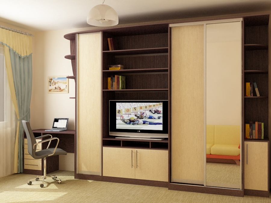Для небольших помещений предпочтительнее выбирать мебель светлых тонов. Такая стенка способна визуально сделать помещение более просторным, наполнить его естественным светом.