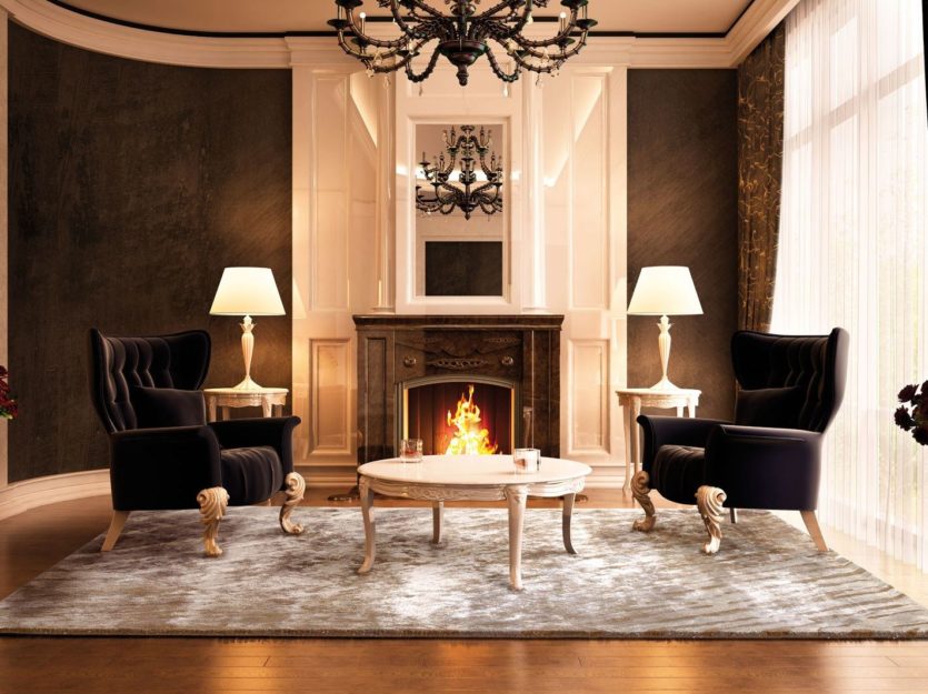 Главная черта интерьера в таком стилевом решении — это роскошь и богатство. Должны выбираться одни из самых дорогих материалов, мебель должна быть с позолотой, а обои шелковые.