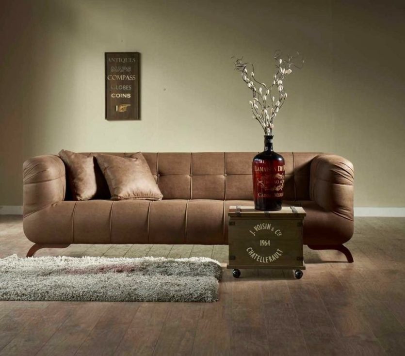 - диван классического стиля, стандартной обивки, песочных цветов;