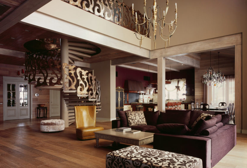 Сложное оформление, что легко можно перепутать с другим направлением – эклектикой. Главное различие между двумя особенными стилевыми решениями в необычности.
